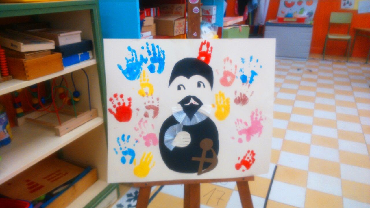 Después hemos reconocido todas las partes del cuadro del "CABALLERO DE LA MANO EN EL PECHO" y cuando ya lo teníamos montado, lo hemos decorado con nuestras manos...y nos ha quedado..¡PRECIOSO!...