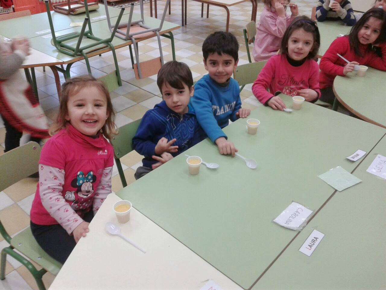 MARÍA, la mamá de ADRIANA, nos trajo unas natillas y Laura y Adriana nos enseñaron cómo se hacen...